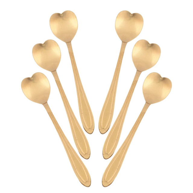 PCS Colheres Café 4/6/8 Chá Coração Sobremesa Inox Dourada/Colher de chá metal dourado