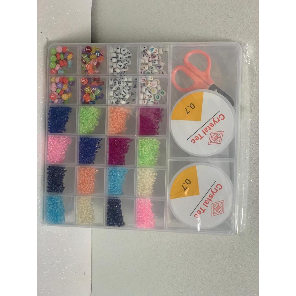ENVIO IMEDIATO EM ATÉ 24H - PRODUTO À PRONTA ENTREGA Kit de miçangas na maleta modelo totalmente exclusivo e original criado com muito carinho e amor pensando na variedade de miçangas coloridas, de excelente qualidade, sem emendas, para você criar lindos e diferentes modelos de bijuterias como pulseiras, brincos e colares infantil e adulto. Um presente perfeito para quem quer se divertir ou empreender, sejam elas crianças, jovens ou adultos. Prepare-se para criar muitas pulseiras, brincos, colares e acessórios estilosos e personalizados! OBS: TODOS OS PEDIDOS SÃO PROCESSADOS EM 24 HORAS. APÓS O PROCESSAMENTO DOS PEDIDOS, AGUARDAMOS AS TRANSPOTADORAS VIR COLETAR ,LEMBRANDO QUE OS CODIGOS DE RASTREIO E FORNECIDO DIRETAMENTE PELA PLATAFORMA DA SHOPEE