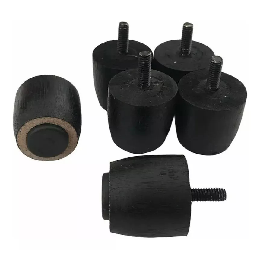 Kit 8 unidades na cor PRETA , pé de cama box com ponta de plástico para evitar ruídos e riscos no piso. São rosqueáveis e fáceis de montar. Um produto de qualidade madeira maciça já vai com o parafuso. Utilizado em cama box ou box baú. Também podendo ser usado em outros móveis que tenha base de madeira. Características: Material: Madeira Maciça Cor: PRETO Rosca: Padrão De Cama Box e Baú De Fabricação Nacional. (5/16) Quantidade: 8 Unidades Fixas Base: Sapata de Plástico Medidas: 4cm sem conta com o parafuso, 4cm de largura