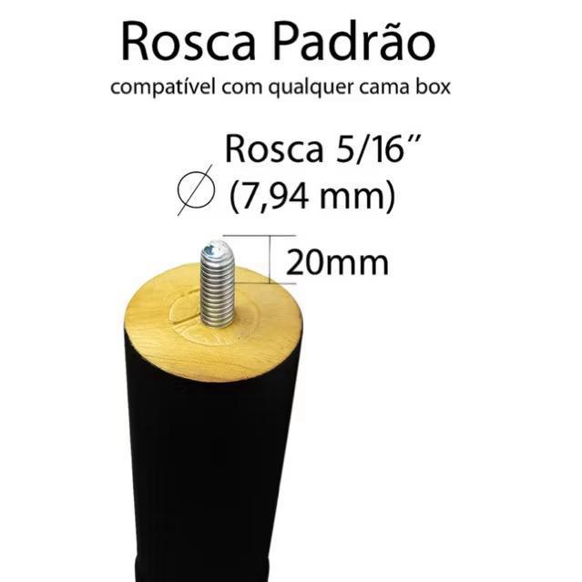Pé de madeira para Cama box Preto + Bucha Metálicas fixar Solteiro Casal King Queen Rosca Universal 5/16 12 cm