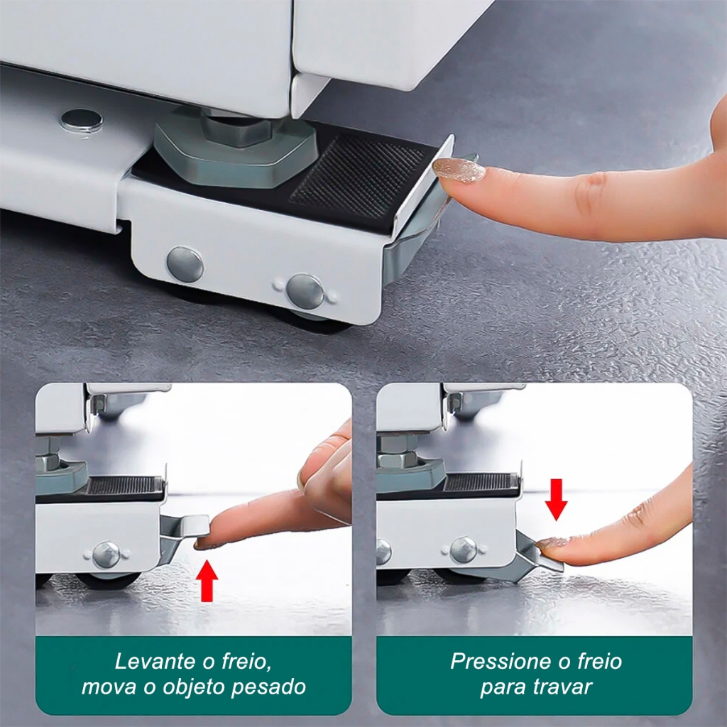Pé Nivelador Lava Seca Geladeira Fogão Freezer Anti Vibração Ajustável com Rodinhas e Travas