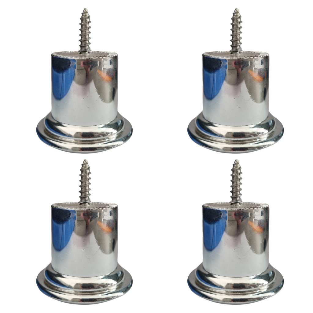 Pé PVC para sofá poltrona cabeceira de cama 4,5cm de altura prata redondo kits