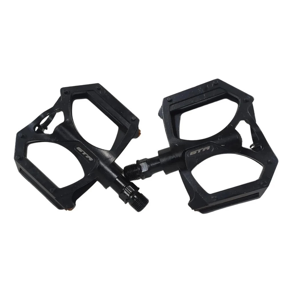 Pedal Bicicleta Mtb 9/16 Plataforma Par Alumínio Com Bucha Du Caracteristicas: Marca: GTA Cor: Preto Com Refletor Eixo com Bucha DU Para uso em pedivela com engrenagem fixa (rosca grossa) Indicado para uso em bicicleta adulto Conteúdo: 1 par (lado direito + lado esquerdo) Composição: Aluminio, nylon e aço Peso aproximado: 350g