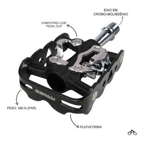 Pedal Clip Zeray E Plataforma Preto Com Rolamento Tacos Mtb Menor Preço Detalhes do produto: -Cor: Preto -Eixo: 9/16 " ( Rosca Grossa ) -Compatível com Pediela Shimano , Sram , Absolute , Sunrace , entre outros -tamanho: 85mm X 63mm x 25mm -corpo: Alumínio -Pedal Clip e Plataforma, pode usar clipado com a sapatilha para passeios mais longos ou com um tenis comum com muito conforto para passeios pela cidade menor custo beneficio do mercado. -Regulagem da tensão da fixação do taco -Eixo em Cromo -Acompanha par de tacos e parafusos (SPD padrão shimano) Peso: 330 gramas o Par