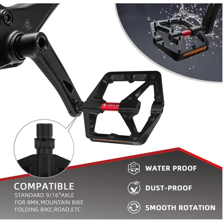 Pedais de Bicicleta em Liga de Alumínio com Dupla Face | Upgrade Profissional, Design Leve, Aderência Firme Componentes de pedal de alto desempenho projetados especificamente para bicicletas de montanha, bicicletas de estrada e bicicletas urbanas. 🌟 Estrutura e Materiais Principais O corpo leve em liga de alumínio é forjado a partir de liga de alumínio de grau aeroespacial, reduzindo o peso em aproximadamente 40% em comparação com os pedais de plástico originais (peso total de apenas 360 gramas), reduzindo efetivamente o "peso morto" durante a pedalada e melhorando a eficiência da pedalada; a superfície é anodizada, tornando-a resistente ao desgaste e à corrosão, adequada para ambientes externos adversos. Design Antiderrapante de Dupla Face: Equipado com múltiplos pinos antiderrapantes em ambos os lados (10 de cada lado), proporcionando forte aderência independentemente da direção da pedalada e evitando escorregões em superfícies molhadas ou durante pedaladas de alta intensidade; faixas refletoras laranja nas bordas aumentam a visibilidade durante a pedalada noturna, melhorando a segurança. Versátil: Eixo de 9/16 (3/4) polegadas, tamanho padrão, adequado para a maioria das bicicletas, como BMX, mountain bikes, bicicletas híbridas, bicicletas retrô, cruisers, bicicletas off-road, bicicletas dobráveis de estrada, bicicletas de turismo de estrada, bicicletas de pista, monociclos, bicicletas urbanas, etc. Segurança aprimorada: Os pinos antiderrapantes e as faixas refletoras em ambos os lados reduzem significativamente o risco de escorregar durante a pedalada, melhorando a segurança para pedalar à noite, tornando-o ideal para deslocamentos urbanos e passeios ao ar livre. Durabilidade aprimorada: O corpo em liga de alumínio com rolamentos selados tem uma vida útil de 3 a 5 vezes maior do que os pedais de plástico, reduzindo custos e a frequência de substituição. 🛠️ Cenários de uso Bicicletas de montanha/Motocicletas: Os pinos antiderrapantes proporcionam forte aderência e os rolamentos selados evitam eficazmente a erosão por lama e areia, tornando-os adequados para terrenos complexos; Bicicletas de estrada: O design leve melhora a eficiência da pedalada e a ampla área do pedal proporciona uma transmissão de potência mais estável; Deslocamento diário: Faixas refletoras de dupla face aumentam a segurança em dias de chuva e melhoram a visibilidade durante deslocamentos noturnos; Dimensões: 100*80*15mm Tamanho do eixo central: 14mm (9/16'')