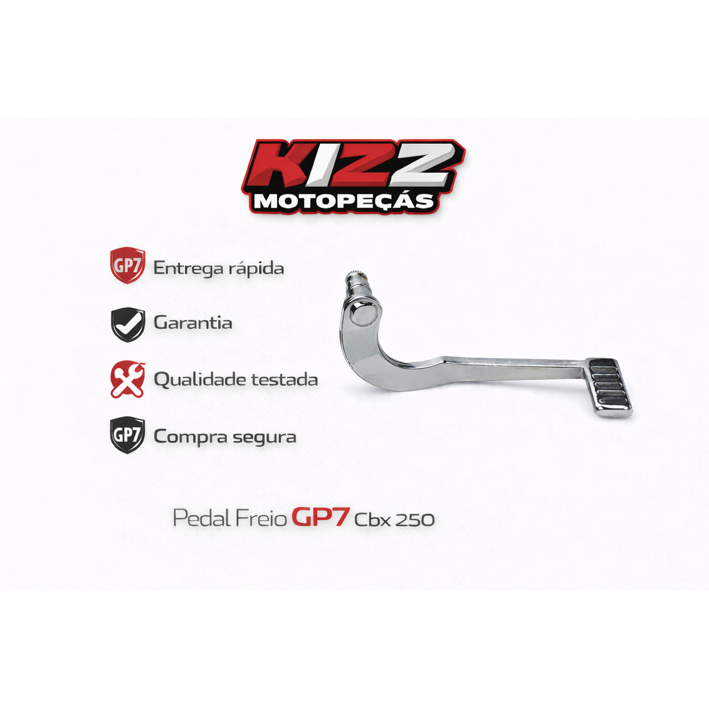 O Pedal de Freio GP7 foi desenvolvido para entregar frenagem firme, resposta precisa e alta durabilidade para sua Honda CBX 250. Ideal para uso urbano diário e deslocamentos rodoviários leves, este pedal proporciona sensação de frenagem confiável, maior controle nas desacelerações e conforto ao pilotar, aumentando sua segurança em qualquer situação. Fabricado em aço reforçado com acabamento resistente à corrosão, o pedal GP7 garante alta resistência ao desgaste, mesmo com uso contínuo ao longo do tempo. Seu encaixe compatível com o sistema original torna a instalação simples e rápida, sem necessidade de adaptações ou modificações. Modelos Compatíveis: Honda CBX 250 Titan 150 Sport (Recomendamos sempre confirmar a compatibilidade no manual da moto ou com seu mecânico de confiança antes da instalação.) Dados Técnicos (aproximados): Material: Aço reforçado com acabamento anticorrosivo Acabamento: Pintura eletrostática ou revestimento resistente Peso aproximado: 0,30 a 0,55 kg Fixação: Compatível com sistema de freio traseiro original GP7(Especificações podem variar conforme lote de fabricação.) Principais Benefícios: Resposta firme e precisa ao acionar o freio Construção robusta com alta durabilidade Acabamento resistente à corrosão e desgaste Encaixe exato e instalação prática Mais conforto e controle nas frenagens Por que comprar na Kizz Moto Peças: Produto de qualidade comprovada e procedência garantida Envio rápido e seguro para todo o Brasil Atendimento especializado para orientar sua escolha Suporte dedicado antes e depois da compra Garanta agora o Pedal de Freio GP7 para Honda CBX 250 e experimente controle, segurança e confiança em todas as suas frenagens. Imagens Meramente Ilustrativas