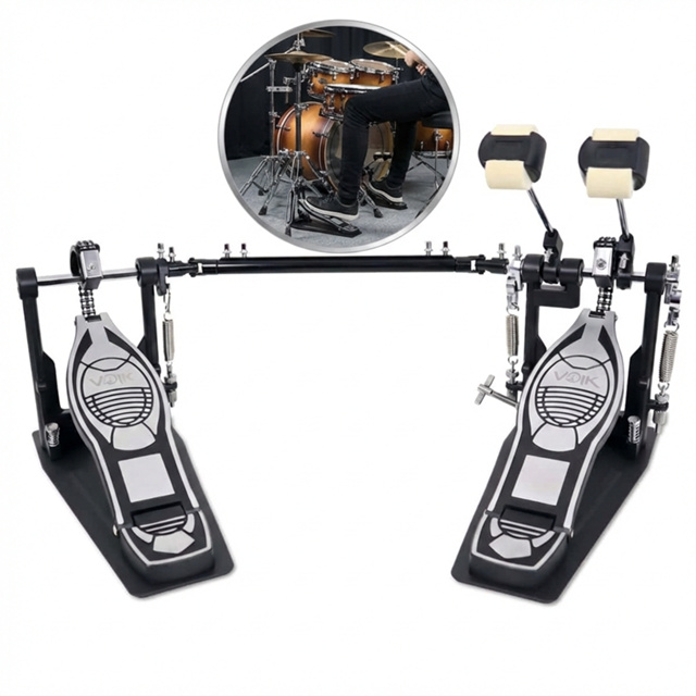Pedal Duplo Bateria Acústica Voik VPB-100 Corrente Dupla Batedor Multiface Altura e Tensão Ajustável