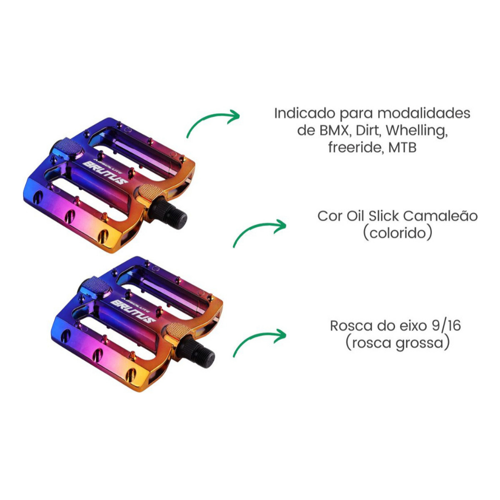 PEDAL PLATAFORMA ABSOLUTE BRUTUS CAMALEÃO ALUMÍNIO 9/16 ROSCA GROSSA MTB BMX DIRT DOWNHILL GRIP EXTREMO