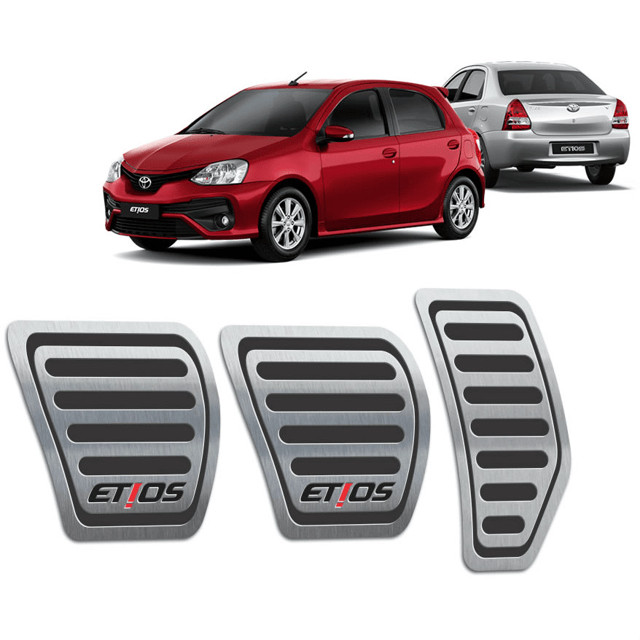 Gravação em relevo antiderrapante; Aparência esportiva e personalizada; Modelagem sob medida; Não fura os pedais originais; Instalação simples feita em minutos; ITENS INCLUSOS: 1 pedaleira para acelerador 1 pedaleira para freio 1 pedaleira para embreagem DESCRIÇÃO: A textura do aço escovado e a gravação em baixo relevo aumentam a aderência dos pedais garantindo mais esportividade na pilotagem. A instalação é simples e pode ser realizada em poucos minutos, pois as pedaleiras são fixadas com fita-dupla face 3M de alta performance. Este método de fixação foi testado e aperfeiçoado exaustivamente até chegarmos numa fixação firme e duradoura, o que é imprescindível para um local com tanto atrito e movimento. Projetadas especificamente para instalação no Etios com câmbio manual, estas pedaleiras cobrem os pedais originais com perfeição. A sola dos seus calçados normalmente estão sujas, contendo todo tipo de sujeira, o que colabora para o rápido desgaste dos pedais do seu Etios. Por serem produzidas em aço inoxidável elas nunca perderão o brilho. Instale este conjunto de pedaleiras que além de proteger os pedais contra o desgaste também vai proporcional um visual realmente esportivo. VEÍCULOS COMPATÍVEIS: Toyota: • Etios 2013 Manual • Etios 2014 Manual • Etios 2015 Manual • Etios 2016 Manual • Etios 2017 Manual • Etios 2018 Manual • Etios 2019 Manual • Etios 2020 Manual • Etios 2021 Manual DADOS TÉCNICOS PEDALEIRA: Matéria prima: aço inox 304; Fita dupla face: 3M VHB; GARANTIA: 1 ano