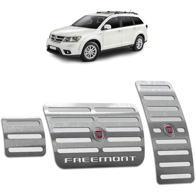 Gravação em relevo antiderrapante; Aparência esportiva e personalizada; Modelagem sob medida; Não fura os pedais originais; Instalação simples feita em minutos; ITENS INCLUSOS: 1 pedaleira para acelerador 1 pedaleira para freio 1 Freio de Estacionamento DESCRIÇÃO: A textura do aço escovado e a gravação em baixo relevo aumentam a aderência dos pedais garantindo mais esportividade na pilotagem. A instalação é simples e pode ser realizada em poucos minutos, pois as pedaleiras são fixadas com fita-dupla face 3M de alta performance. Este método de fixação foi testado e aperfeiçoado exaustivamente até chegarmos numa fixação firme e duradoura, o que é imprescindível para um local com tanto atrito e movimento. Projetadas especificamente para instalação no Freemont com câmbio automático, estas pedaleiras cobrem os pedais originais com perfeição. A sola dos seus calçados normalmente estão sujas, contendo todo tipo de sujeira, o que colabora para o rápido desgaste dos pedais do seu Freemont. Por serem produzidas em aço inoxidável elas nunca perderão o brilho. Instale este conjunto de pedaleiras que além de proteger os pedais contra o desgaste também vai proporcional um visual realmente esportivo. VEÍCULOS COMPATÍVEIS: Fiat: • Freemont 2011 todas as versões Posição: Dianteira • Freemont 2012 todas as versões Posição: Dianteira • Freemont 2013 todas as versões Posição: Dianteira • Freemont 2014 todas as versões Posição: Dianteira • Freemont 2015 todas as versões Posição: Dianteira DADOS TÉCNICOS PEDALEIRA: Matéria prima: aço inox 304; Fita dupla face: 3M VHB; GARANTIA: 1 ano