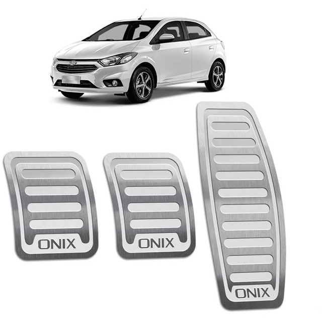Gravação em relevo antiderrapante; Aparência esportiva e personalizada; Modelagem sob medida; Não fura os pedais originais; Instalação simples feita em minutos; ITENS INCLUSOS: 1 pedaleira para acelerador 1 pedaleira para freio 1 pedaleira para embreagem DESCRIÇÃO: A textura do aço escovado e a gravação em baixo relevo aumentam a aderência dos pedais garantindo mais esportividade na pilotagem. A instalação é simples e pode ser realizada em poucos minutos, pois as pedaleiras são fixadas com fita-dupla face 3M de alta performance. Este método de fixação foi testado e aperfeiçoado exaustivamente até chegarmos numa fixação firme e duradoura, o que é imprescindível para um local com tanto atrito e movimento. Projetadas especificamente para instalação no Onix com câmbio manual, estas pedaleiras cobrem os pedais originais com perfeição. A sola dos seus calçados normalmente estão sujas, contendo todo tipo de sujeira, o que colabora para o rápido desgaste dos pedais do seu Onix. Por serem produzidas em aço inoxidável elas nunca perderão o brilho. Instale este conjunto de pedaleiras que além de proteger os pedais contra o desgaste também vai proporcional um visual realmente esportivo. VEÍCULOS COMPATÍVEIS: Chevrolet: • Onix 2013 Manual • Onix 2014 Manual • Onix 2015 Manual • Onix 2016 Manual • Onix 2017 Manual • Onix 2018 Manual • Onix 2019 Manual DADOS TÉCNICOS PEDALEIRA: Matéria prima: aço inox 304; Fita dupla face: 3M VHB; GARANTIA: 1 ano
