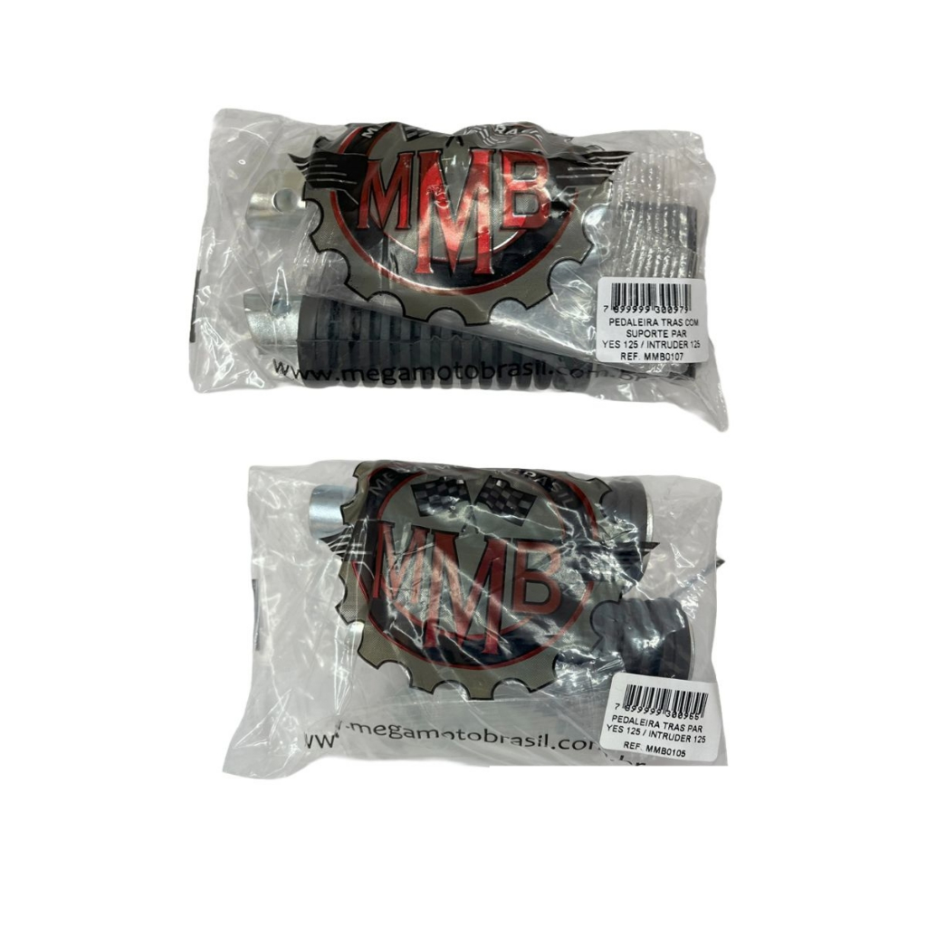 DESCRIÇÃO: - PAR TRASEIRAS - PAR DE SUPORTE ( ESCOLHA NA VARIAÇÃO )** - FÁCIL ENCAIXE - SIMPLES INSTALAÇÃO - PRODUTO DE EXCELENTE QUALIDADE - MODELO DA FOTO - MMB - MEGA MOTO BRASIL APLICAÇÃO: - SUZUKI INTRUDER 125 - SUZUKI YES 125 CONTEÚDO DA EMBALAGEM: - 1 (um) PAR de PEDALEIRAS ( direita e esquerda) - ** 1 (um) PAR de SUPORTE DE PEDALEIRA ( ESCOLHA NA VARIAÇÃO) ** IMPORTANTE: - Garantia contra defeitos de fabricação. - Não nos responsabilizamos pelo mau uso do produto. - Recomendamos que a troca/ instalação seja realizada por um profissional qualificado. - Tire todas as dúvidas no campo de perguntas abaixo, temos uma equipe totalmente qualificada a disposição pronta para ajudar. ATENÇÃO! - AS ETIQUETAS DE ENVIO SÃO GERADAS AUTOMATICAMENTE ATRAVÉS DO SEU CADASTRO VERIFIQUE CORRETAMENTE SEU ENDEREÇO PARA EVITAR PROBLEMAS CAUSADOS NA ENTREGA DOS PRODUTOS! OBRIGADO. MOON MOTO PEÇAS.