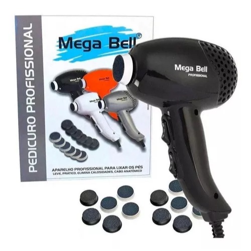 Pedicuro Elétrico Profissional Preto Esfoliador para Pés + 12 Lixas Tira calo Mega Bell