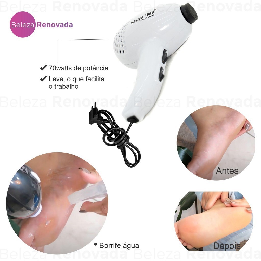 Pedicuro Mega Bell Profissional Lixa Elétrica + 12 Lixa