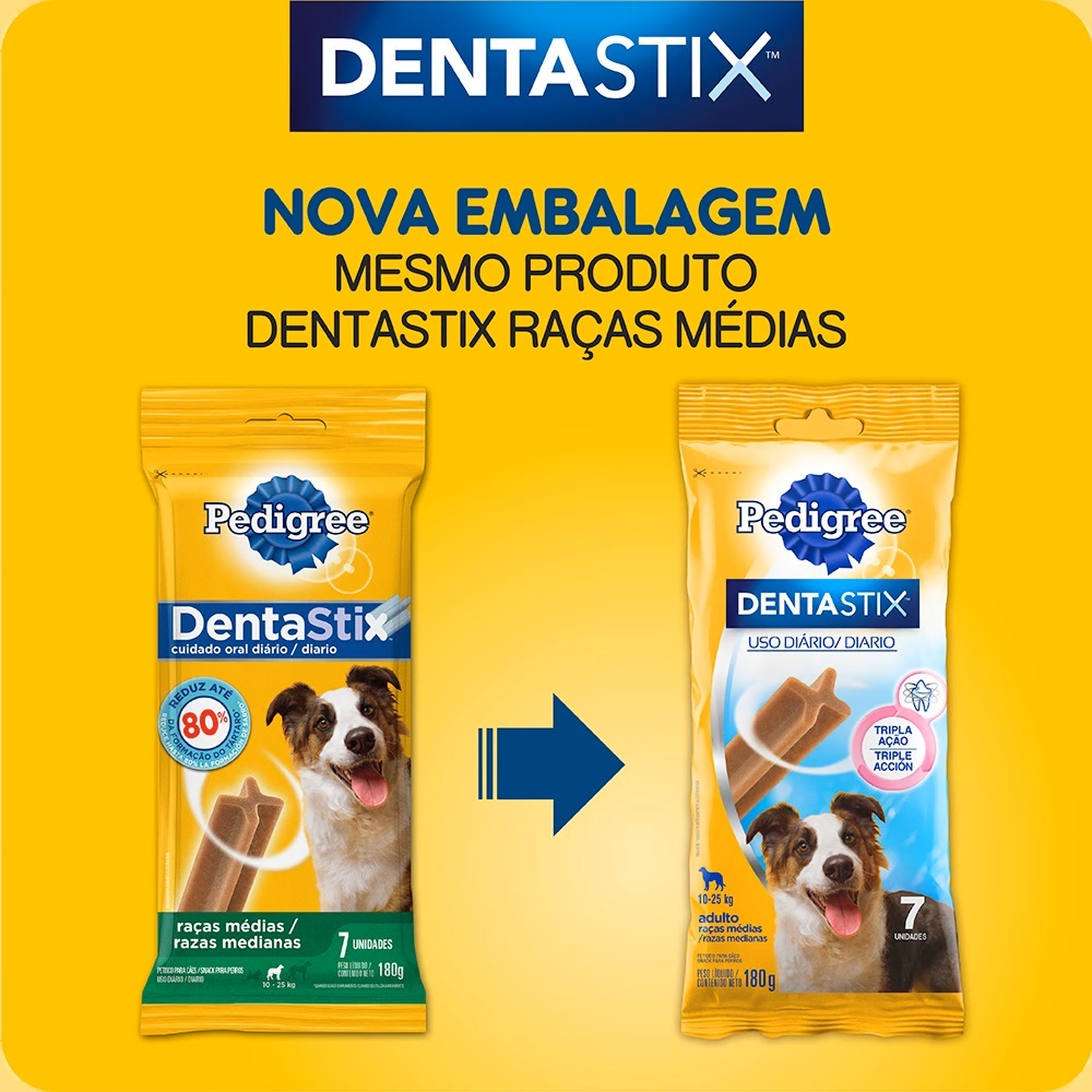Pedigree Dentastix Cães Adultos Raças Médias 7 unidades 180g Petisco Cachorro Cuidado Oral