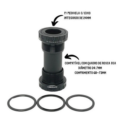 🚴♂️ PEDIVELA ABSOLUTE PRIME DIRECT MOUNT 34D – EIXO INTEGRADO 24MM – BOOST – COM CENTRAL BSA Busca um pedivela 1x moderno, rígido e compatível com transmissões atuais? O Pedivela Absolute Prime Direct entrega excelente custo-benefício para MTB e trekking, com coroa Direct Mount 34D, offset 3mm para quadros BOOST e eixo integrado 24mm, garantindo melhor alinhamento de corrente e eficiência na pedalada. Qualidade e confiabilidade da Absolute. 🔧 Principais Benefícios • Sistema 1x limpo, leve e eficiente • Coroa Direct Mount (padrão SRAM), fácil troca e manutenção • Offset 3mm otimizado para quadros BOOST • Eixo integrado 24mm, mais rigidez e melhor transferência de força • Compatível com 10v, 11v e 12v • Acompanha movimento central BSA, pronto para instalar 📌 Especificações Técnicas • Marca: Absolute • Linha / Modelo: Prime Direct • Modalidade: MTB / Trekking • Comprimento dos braços: 175mm • Coroa: 34 dentes (34D) – Direct Mount • Offset da coroa: 3mm (BOOST) • Eixo: Integrado 24mm • Material: – Braços: Alumínio – Coroa: Alumínio – Eixo: Aço – Tampa de aperto: Alumínio • Cor: Preto (braços e coroa) • Peso aproximado: – Pedivela: 770g – Movimento central: 109g – Tampa: 7g • Part Number: 52363 • Código de barras (EAN): 6940194029736 ⚙️ Movimento Central (Incluso) • Padrão: BSA (rosca) • Diâmetro do quadro: 34,7mm • Comprimento do quadro: 68–73mm • Compatível com eixo 24mm 🔗 Compatibilidade • Transmissões 1x 10v / 11v / 12v • Quadros BOOST: – Cubo traseiro 10x141mm ou 12x148mm • Rosca de pedal: 9/16 (grossa) ⚠️ Observações de compatibilidade: • Não trabalha com 2 coroas • Pode ser usado em 7v a 9v, porém com menor retenção de corrente • Coroa removível Direct Mount (padrão SRAM) 📦 Conteúdo da Embalagem • 1 Pedivela Absolute Prime Direct (braços + coroa 34D) • 1 Movimento central BSA • 1 Tampa de aperto ℹ️ Informações Importantes • Produto original Absolute • Importado por ISAPA • Acompanha embalagem original e nota fiscal • Garantia: 90 dias