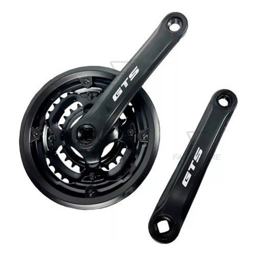 o Pedivela GTS com Coroas 24/34/42 Dentes, ideal para quem busca robustez e versatilidade em terrenos variados. Seu design com 3 coroas proporciona mais opções de marchas, sendo perfeito para quem pratica MTB e ciclo turismo. Com protetor de corrente, esse pedivela ajuda a manter a corrente no lugar, evitando que ela caia ou se desloque durante a pedalada, garantindo maior segurança. Sua estrutura em aço encapado oferece durabilidade e resistência. Características e Benefícios: - Coroas indexadas: 24 / 34 / 42 dentes, garantindo versatilidade em diferentes terrenos. - Material: Aço encapado para maior resistência e durabilidade. - Cor: Preto, que combina com diversos modelos de bicicletas. - Compatível com: Bicicletas aro 29, 26 e 24 com caixa de centro de 34.7 mm e eixo ponta quadrada. - Protetor de corrente: Para maior segurança e proteção da sua corrente. - Tamanho do braço: 170mm, proporcionando um ajuste confortável para o ciclista. - Ideal para: MTB e ciclo turismo, com excelente custo-benefício. - Marca: GTS - Rosca Grossa O que você vai receber: - 1 Pedivela GTS Tipo Shimano Reduzido 42/34/24 para MTB. Produto com Nota Fiscal e Garantia À pronta entrega – envio imediato para todo o Brasil Pedidos com pagamento aprovado até as 11h são enviados no mesmo dia (segunda a sexta) Produto Novo | Garantia | Estoque disponível | Pronta Entrega | Envio Imediato Para Todo Brasil | Nota Fiscal