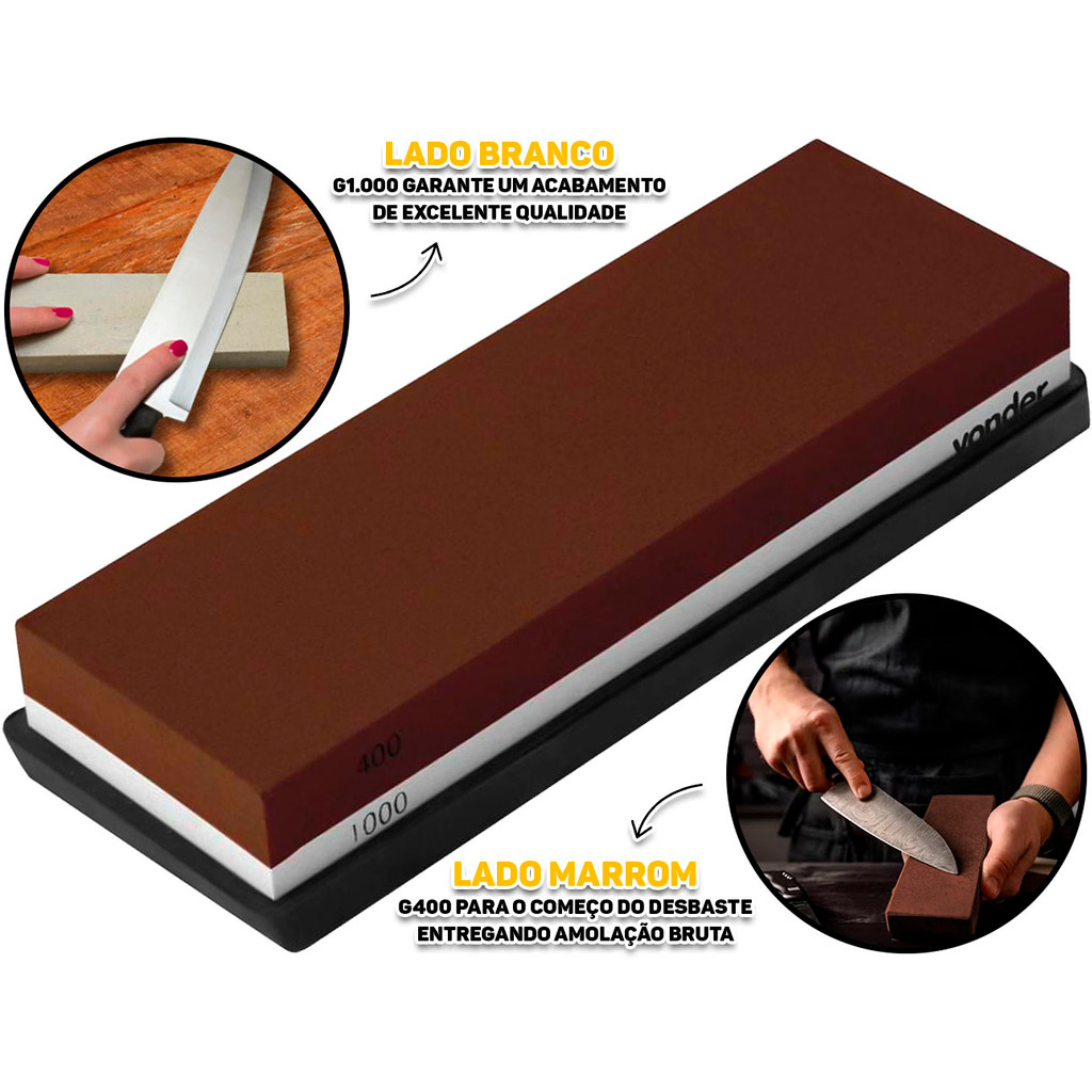 Pedra De Afiar Vonder 400/1000 Dupla Face Granulação Fina E Grossa P/ Cozinha Açougue Churrasco