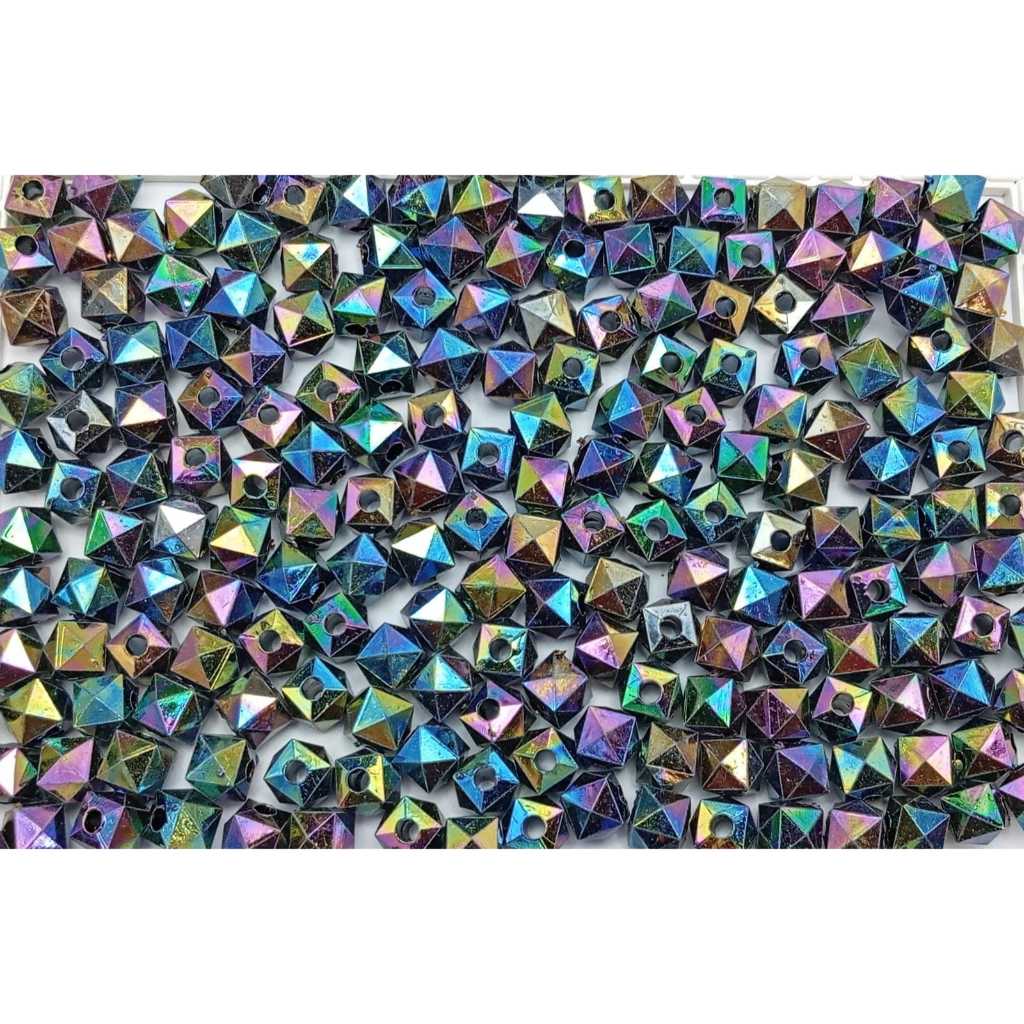Pedraria miçanga cristal cubo quadrado dadinho acrilico 8mm, 500g Cores irisado artesanato