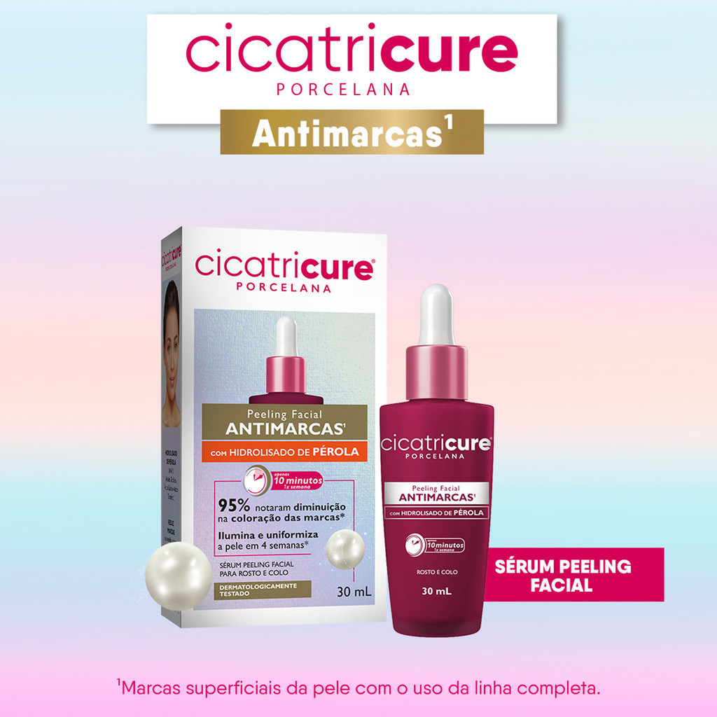ESSE KIT CONTÉM: 1 GEL CREME FACIAL CICATRICURE PORCELANA ANTIMARCAS 50G 1 PEELING FACIAL ANTIMARCAS CICATRICURE PORCELANA 30ML Indicado para uso no rosto, colo e pescoço. Um gel creme facial com ação antimarcas formulado com hidrolisado de pérola que ajuda a reduzir marcas e ilumina e uniformiza a pele em 4 semanas. MODO DE USO: Use diariamente pela manhã e à noite sobre a pele limpa e seca. Aplique uma quantidade adequada de produto, massageando o rosto, pescoço e colo e evitando a área dos olhos. Um sérum peeling facial com ação antimarcas formulado com hidrolisado de pérola que ajuda a reduzir marcas escurecidas a uniformizar o tom e a textura da pele. MODO DE USO: Com a pele limpa, aplique uma quantidade adequada no rosto, pescoço e colo, evitando o contato com os olhos. Deixe agir por no máximo 10 minutos. Enxágue com água em abundância. Não utilize o produto mais de uma vez por semana. Eficácia comprovada - Reduz marcas em 4 semanas - Uniformiza a pele - Hidratação imediata - Pele radiante e luminosa - Não comedogênico Advertências Não aplique sobre a pele lesionada ou irritada. Caso haja qualquer efeito indesejado, suspenda o uso. Não aplique nas pálpebras nos cantos externos do nariz e da boca. Evite a exposição ao sol durante o uso (é aconselhado o uso de protetor solar). Uma leve sensação de ardor, pinicação ou ressecamento da pele poderá ser observada nas primeiras aplicações. Não use em crianças. Não use na gravidez e durante a lactação.