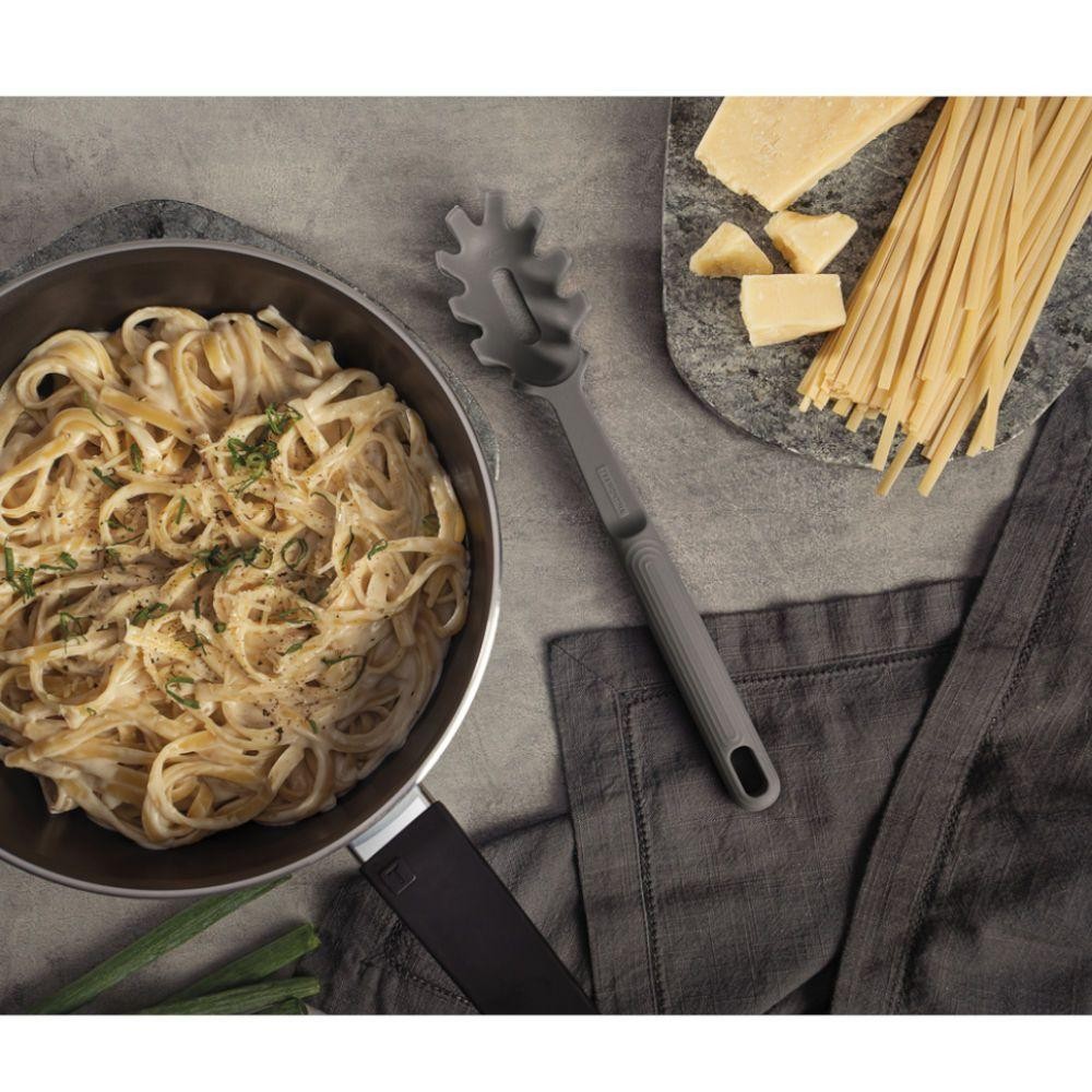 Pegador De Massa De Silicone Softta Tramontina 25856/160 O Pegador de Massa de Silicone Softta Tramontina 25856/160, um utensílio indispensável para quem adora cozinhar com praticidade e estilo. Com um design ergonômico e materiais de alta qualidade, esse pegador é ideal para manusear massas, saladas e outros alimentos, proporcionando conforto na hora de servir. O silicone não aquece e garante segurança, evitando queimaduras durante o preparo dos seus pratos favoritos. Este pegador de massa é resistente a altas temperaturas, suportando calor de até 210° e fácil de limpar, tornando-o perfeito para o uso diário. Com uma combinação de elegância e funcionalidade, ele se destaca em qualquer cozinha. Seu acabamento em silicone também previne riscos em panelas antiaderentes, garantindo que seus utensílios permaneçam em excelente estado por mais tempo. Aposte na praticidade e qualidade da Tramontina para transformar sua experiência culinária. O Pegador de Massa de Silicone Softta 25856/160 é a escolha ideal para quem busca eficiência e sofisticação. Adicione este produto ao seu arsenal de utensílios e descubra um mundo de possibilidades na cozinha! Peças: 1 Material da ponta: Silicone Material do cabo: Silicone Calor suportado (ºC): 210 Pode ir à lava-louça: Sim Peso (kg): 0.08 Referência: 25856/160 Dimensões (AxLxP): 3,4 x 5,6 x 28,8cm Itens Inclusos: 1 Pegador De Massa De Silicone Softta Tramontina 25856/160 Informações importantes: Imagens meramente ilustrativas. Objetos que ambientam as fotos não acompanham o produto. As tonalidades das cores dos produtos podem sofrer alterações de acordo com a calibração do seu monitor. Este produto não inclui montagem e instalação. Não nos responsabilizamos, no ato da entrega por desmontagens, subir escadas, elevadores ou transporte por guincho para apartamentos. Eventuais despesas são de responsabilidade do cliente. Garantia Fabricante: 3 meses