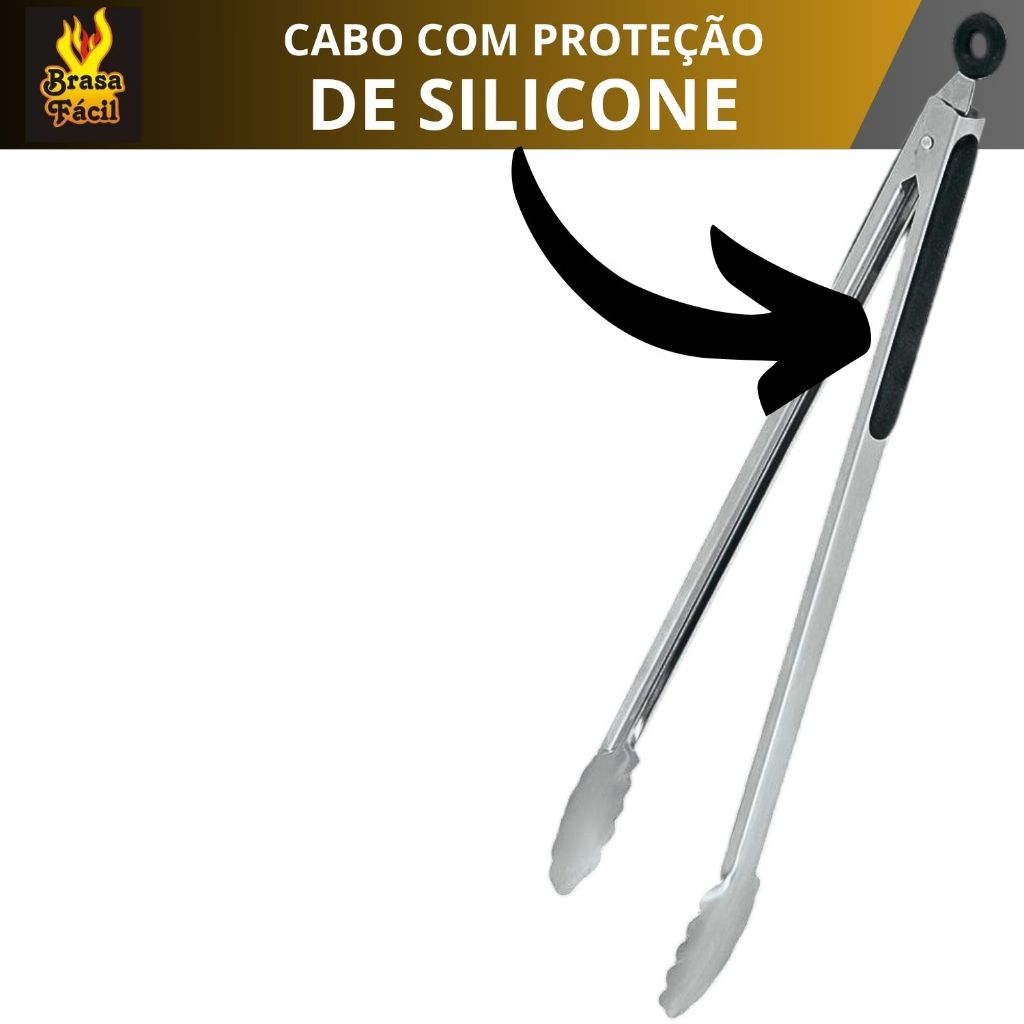 Pegador Inox Universal 40Cm ou Pinça para Alimentos Salada e Churrasco Profissional com Cabo Longo Brasa Fácil
