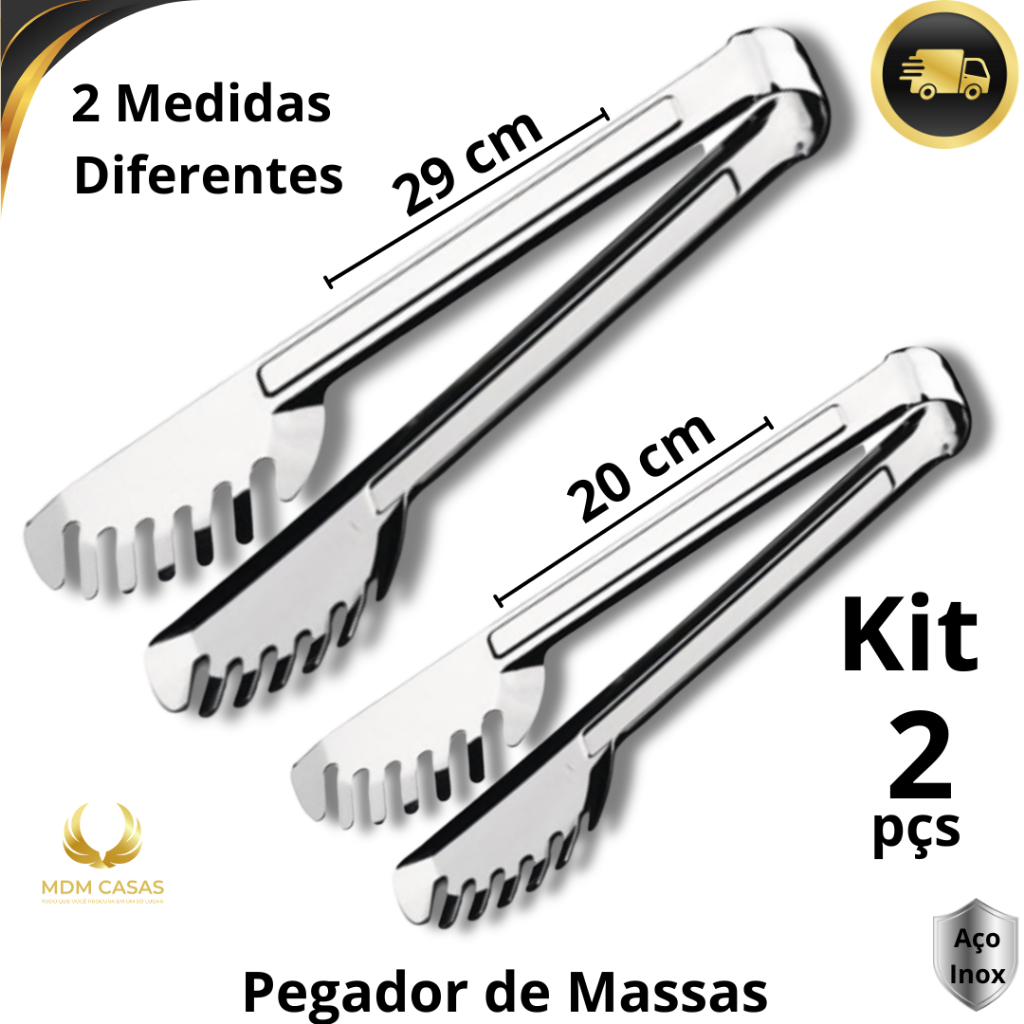 Pegadores Aço Inox Premium 20 e 29cm Para Salada Salgados Macarrão Utensílio Cozinha Restaurante Buffet