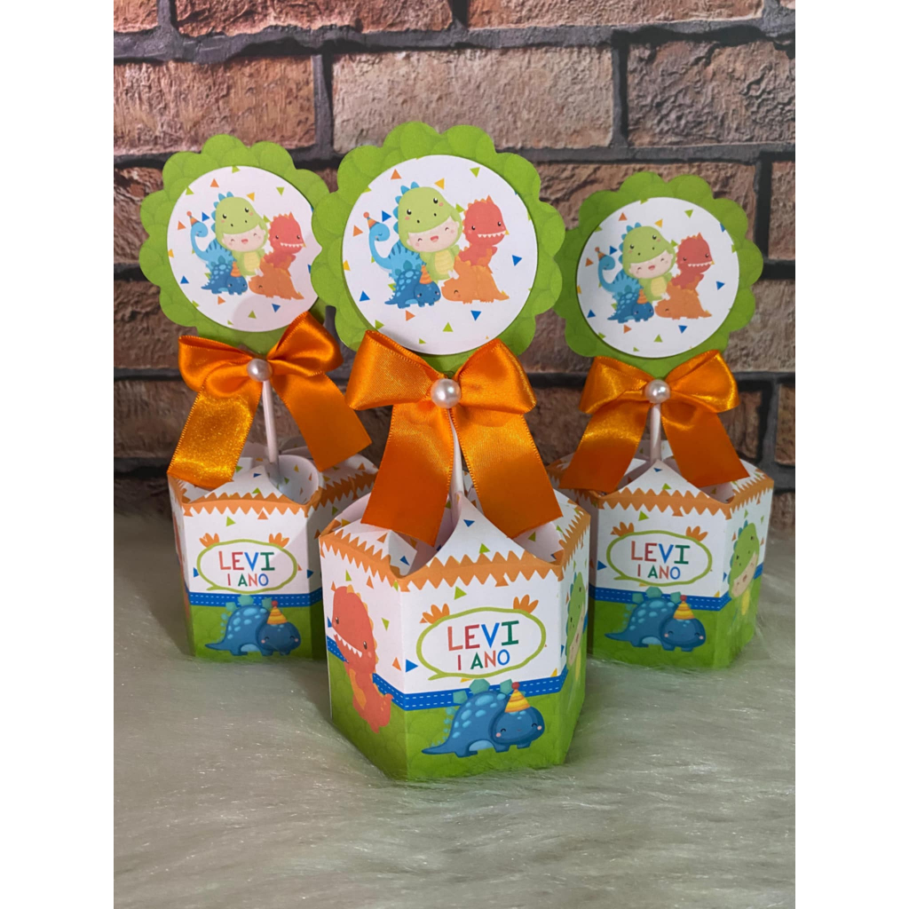 Pegue e Monte Caixa Sextavada Pequena Dinossauro Baby Centro de Mesa Lembrancinha Festa Infantil