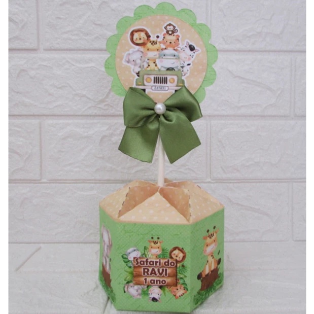 Pegue e Monte Centro de Mesa P Safari Baby Caixa Sextavada Festa Aniversário Infantil