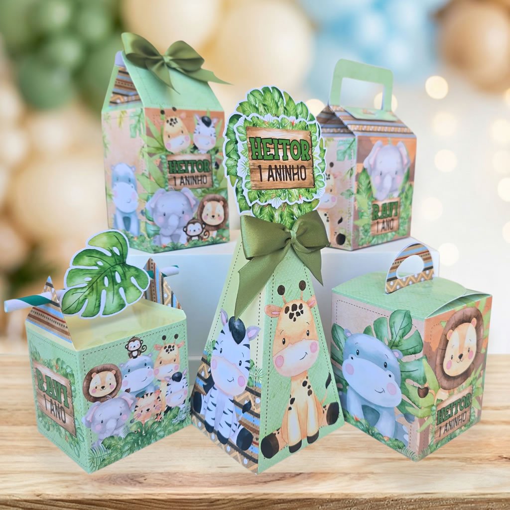PEGUE E MONTE - Kit caixas Safari Aquarelado - Kit festa lembrancinha de aniversário