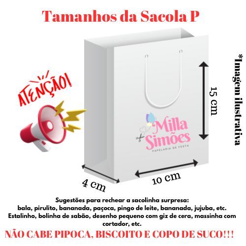 **************LEIA COM ATENÇÃO TODA A LEGENDA******************* Deixe sua comemoração ainda mais especial com a nossa sacolinha surpresa. Ideal para lembrancinhas e doces pequenos (balas, pirulitos, paçoquinha e etc) ***NÃO cabe pipoca e copo de guaraná natural*** Esta sacolinha é confeccionada em papel fosco de alta gramatura e excelente qualidade de impressão, nossa tinta é pigmentada e não mancha o produto se molhado, garantindo resistência e qualidade ao produto . Com o tamanho de 10 x 15 x 4 cm, é perfeita para surpreender seus convidados. NÂO modificamos a arte! NÃO INCLUÍMOS NOME E IDADE A sacolinha pode ser adaptada para qualquer ocasião, como aniversários, batizados, festas temáticas, e muito mais! ACOMPANHA ALÇA As sacolinhas são enviadas cortadas e vincadas apenas para você colar e montar (MODALIDADE PEGUE E MONTE), desta forma seu pedido estará mais protegido no transporte até você, além de diminuir o valor do frete. ** As cores dos produtos podem variar de tonalidade de acordo com a configuração de cada monitor, tela de celular e claridade do local onde a foto foi tirada ** Não encontrou o tema que deseja? Nos envie uma mensagem que desenvolveremos ele pra Você! Qualquer dúvida estamos à disposição!