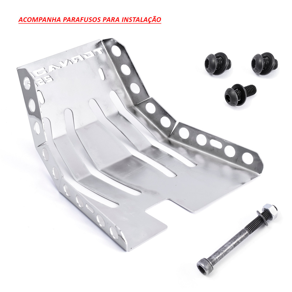 Peito de Aço Tornado 250 CC 2001 2002 2003 2004 2005 2006 2007 2008 Cromado Sobre o produto anunciado: Fabricado em aço extremamente resistente. Esse protetor tem a função de proteção, além do visual agressivo e imponente que proporciona em sua moto. Esse produto recebe tratamento especial e máxima resistência contra ferrugens. Especificações técnicas: Chapa de aço com Alta resistência Fabricados em aço 1020. Chapa com 1,2 mm de espessura. Encaixe perfeito. Utiliza os parafusos originais. Não precisa de adaptações. Fácil instalação. Cor Cromado. Conteúdo da embalagem: 01 - Peito de aço frontal. 01 - Kit de instalação. Compatível com: Tornado 250 cc 2001 à 2008. (Compatível com todas as versões 250 cc). Garantia de 3 meses contra defeitos de fabricação. Recomendamos que a instalação seja realizada por um profissional. Imagens ilustrativas. ------------------------------ Peito de Aço Tornado 250 Cromado ------------------------------ Atenção: As compras realizadas em nome de Pessoa Jurídica estão sujeitas à cobrança de ICMS, conforme Protocolo ICMS 41, de 4 de Abril de 2008. Caso você tenha dúvidas sobre o percentual (%) a ser aplicado, consulte a Cláusula Segunda, 1 do referido Protocolo.
