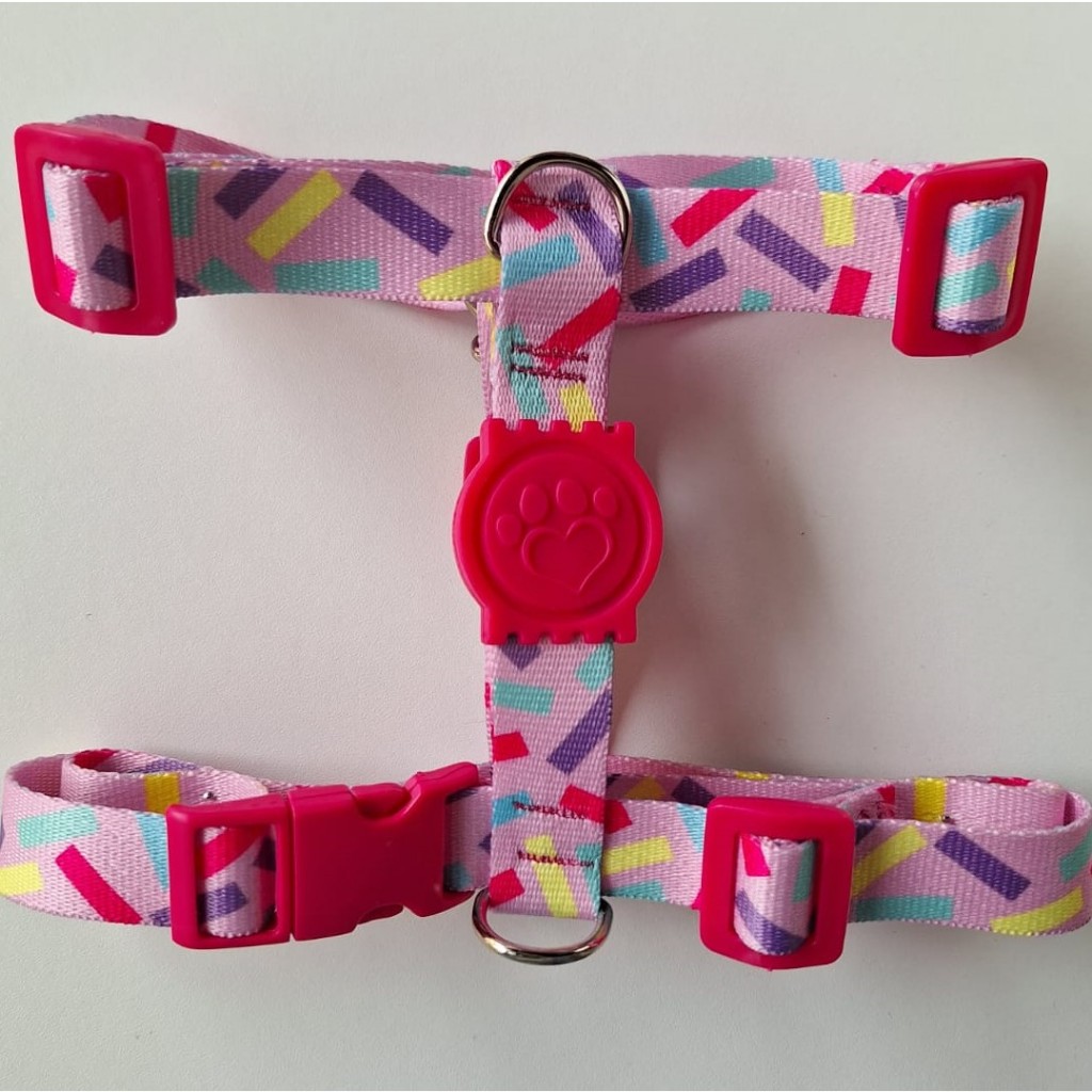 Peitoral H Anti-puxão rosa com lilás para cachorro