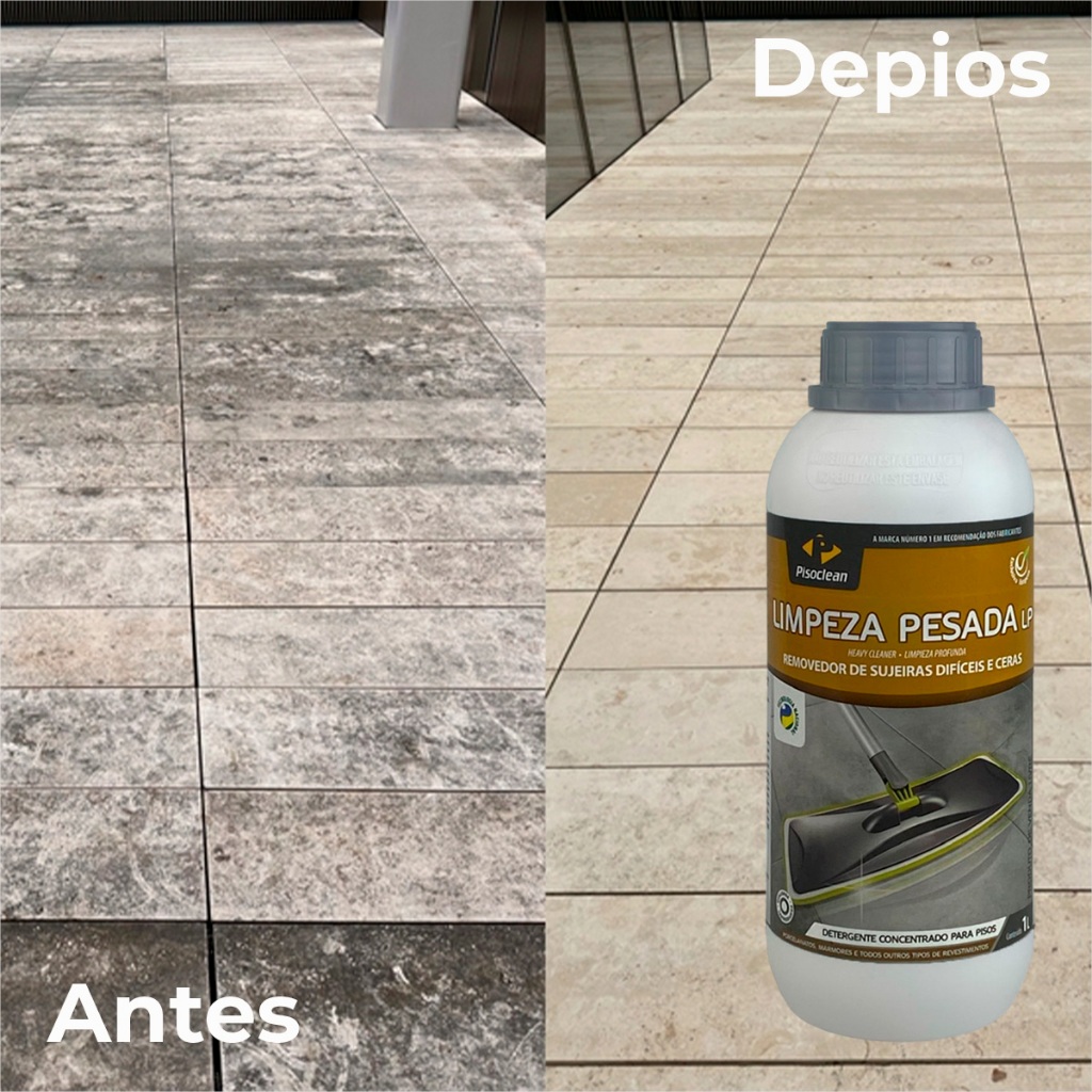 LIMPEZA PESADA LP Removedor de sujeiras difíceis e ceras Limpeza Pesada LP é o produto ideal para limpar intensamente aquelas sujeiras mais difíceis sem danificar os revestimentos. É um detergente alcalino com elevado poder de retirar gorduras e graxas. É também um produto extraordinário para limpeza pós-obra de pisos sem resíduos de cimento. Ideal para limpar sua garagem e cozinha. Remove ceras em geral e Cera Especial LP. Onde usar Ambientes: Áreas internas, áreas externas. Revestimentos: Mármores sensíveis e delicados, Granitos, Outras rochas, Cimentícios, Cerâmicas, Porcelanatos, e qualquer tipo de superfície lavável. Obs.: Não deve ser usado em pisos tratados com ceras, vernizes ou resinas (a não ser com a finalidade de remoção). Pode ser usado em pisos tratados com nossos hidro/oleofugantes. Para a manutenção do dia-a-dia utilize somente Limpeza Diária LP. Resolve: Sujeiras mais difíceis de serem retiradas, respingos de tintas a base d’água, ceras indesejadas, gorduras em revestimentos diversos. Benefícios: Exclusiva nova fórmula suave odor. Alto poder desengraxante. Como usar Limpeza Pesada LP é fornecido em estado concentrado. Recomendamos a diluição de uma parte do produto em até 20 partes de água, dependendo do estado da superfície. Quanto mais sujo, encerado ou engordurado, utilize-o em menor diluição ou mesmo puro. 1. Espalhe o produto sobre a superfície e deixe agir entre 15 a 20 minutos. 2. Esfregue com intensidade utilizando fibras, vassouras ou acessório de limpeza apropriado. 3. Enxágue com água pura e, caso persista algum resíduo sobre a superfície, repita a operação. Rendimento Tipo de limpeza Pesada - 1:2 Até 40m² Média - 1:8 Até 80m² Leve - 1:20 Até 120m² Concentrado