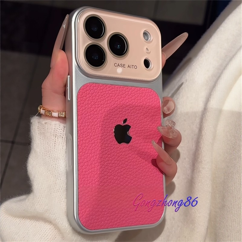 Pele De Lichia Padrão Couro À Prova De Choque Caso Para iPhone 16 Pro Max 14 15 17 Capa De Lente De Vidro Cristal