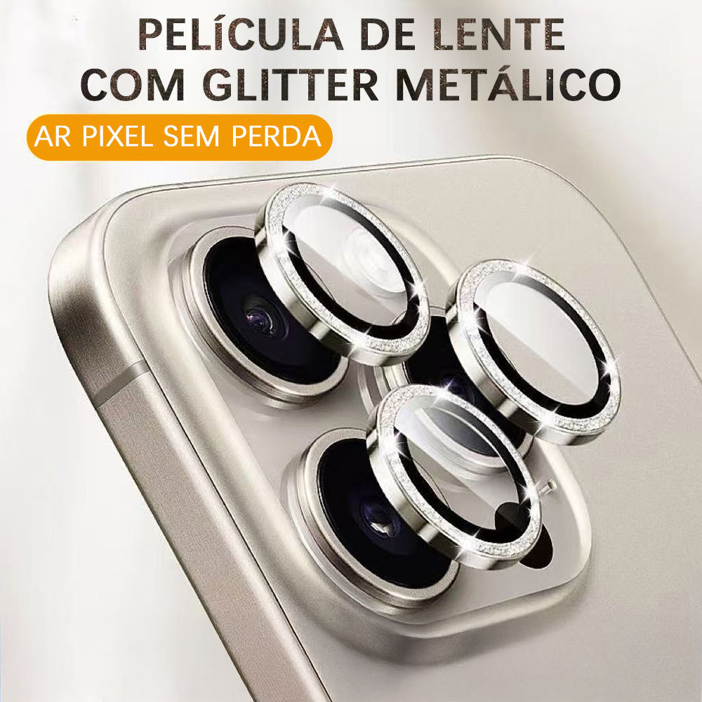 Película de Lente de Câmera com Strass Para iPhone 16 15 14 13 12 11 16E Pro Plus Max Mini Anti-Arranhão Integrada M007