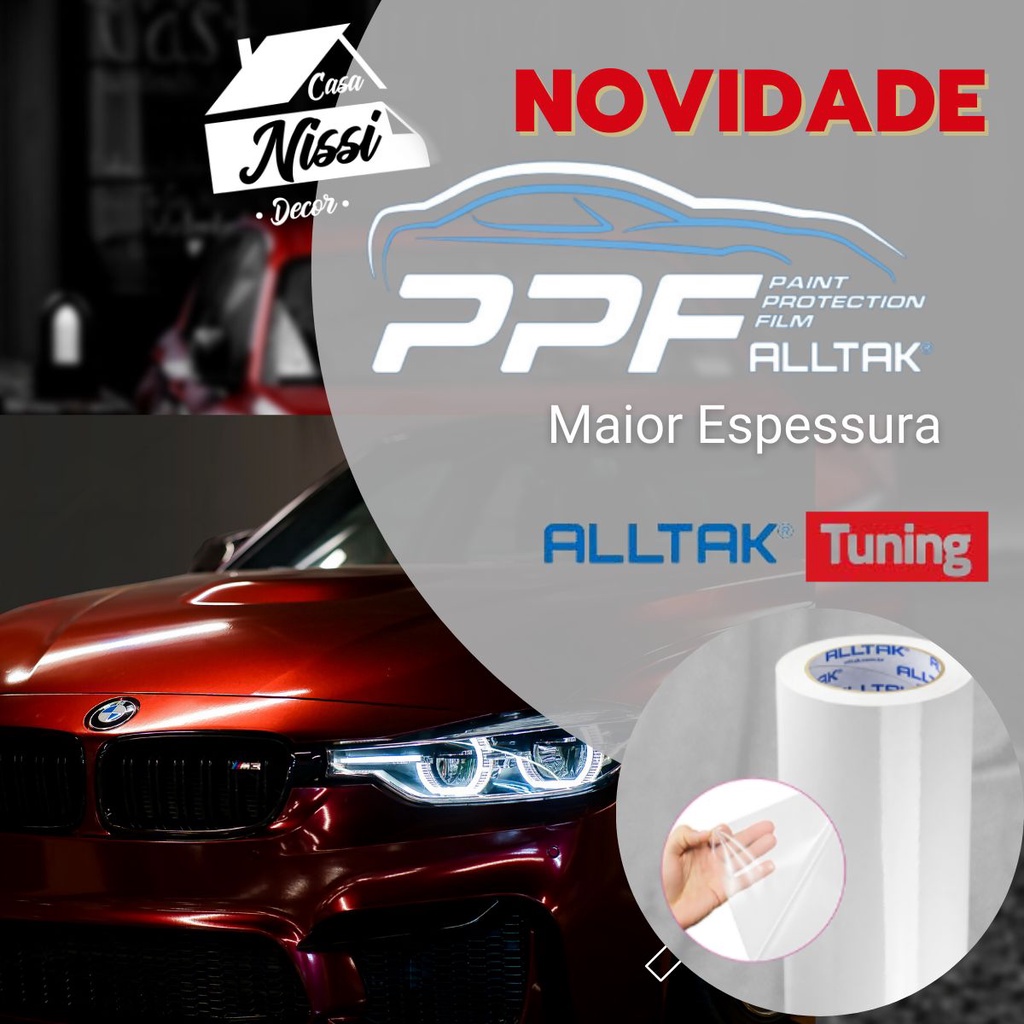 Vinil ULTRA pertence a linha ALLTAK TUNING. É uma película de PPF de PVC calandrado POLIMÉRICO com alto brilho. PRODUTO COM ESPESSURA DE 150 MICRAS Dimensões 1,5mts de comprimento por 68cm de largura. LANÇAMENTO PELICULA DE PROTEÇÃO TRANSPARENTE PARA FAROL/LANTERNAS, CAPO, MAÇANETA, PARACHOQUE, SOLEIRA, CARRENAGEM.UNICO MATERIAL QUE POSSUI UMA CAMADA DE FILME TRANSPARENTE DE PROTEÇÃO SOBRE O ADESIVO, QUE VISA O AUMENTO DA PRATICIDADE NA APLICAÇÃO, REDUZINDO O INDICE DE DANOS E RISCOS DE ESPATULA DURANTE A APLICAÇÃO.ATENÇÃO !!Recomendações: Aplicar COM AGUA E SHAMPOO INFANTIL em superfície lisa e plana previamente limpa utilizando álcool isopropílico, evitando assim o contato com impurezas, oleosidade ou qualquer outro produto químico;Não indicada aplicação em superfícies corrugadas, rugosas e/ou porosas; Instalar imediatamente após corte;Depois de aplicado evitar produtos agressivos e atritos constantes, usar sabão neutro.ATENÇÃO ! Enviaremos junto com o produto link de vídeo de instalação. Durabilidade esperada: 2 anos para uso em exteriores Utilização de solvente em excesso diminui o tempo de durabilidade do produto ;ATENÇÃO! Será enviado em rolo, sem dobrar.