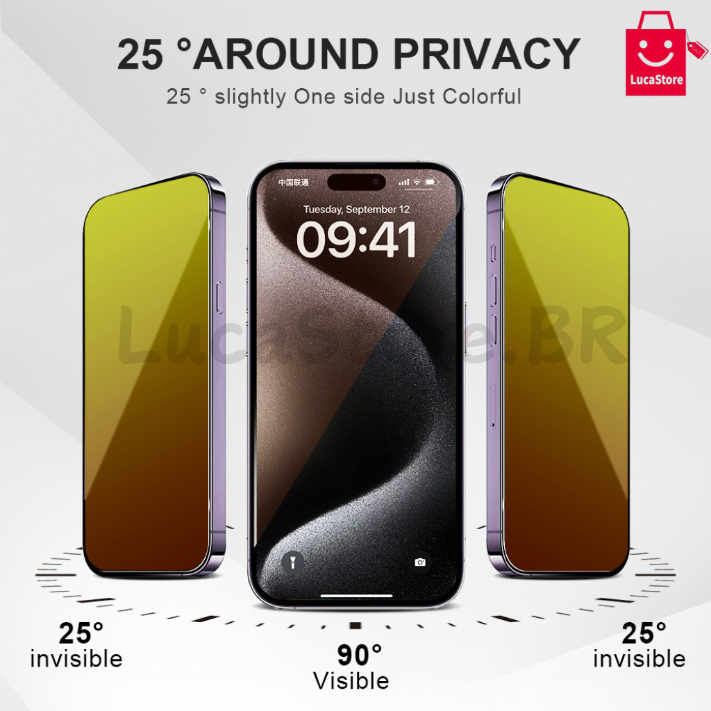 Película De Vidro 3D Colorido Privacidade Anti Spy Para IPhone 6G,7G,8G,PLUS ,XR ,XS ,11 12 13 14 PRO MAX IPhone 15