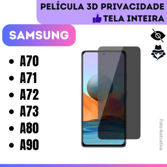 | Película de Vidro 3D Privacidade Para Samsung A70 / A71 / A72 / A73... este produto | R$ 16,99 | — | 4.7/5 | 6 |
