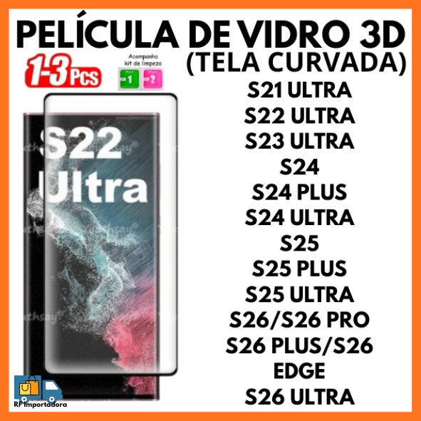 Película De Vidro 3D Temperado Para Samsung S21 S22 S23 S24 S25 S26 ULTRA PRO PLUS (TELA CURVADA) integra a oferta da Shopee Brasil na subcategoria Protetores de Tela (de Celulares e Dispositivos) por R$ 22,99 (50% de desconto sobre o preço original de R$ 45,98). Com avaliação de 4.4 de 5 estrelas e 208 unidades vendidas, este produto se destaca pelo excelente custo-benefício.