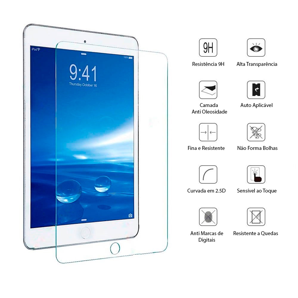 A película de vidro temperado para Ipad 6 6ª Geração 2018 A1893 A1954 Tela 9.7 Polegadas, tem alta transparência e é muito resistente e bem mais superior em qualidade, desenvolvida cuidadosamente e projetada para dar maior proteção a sua tela por muito mais tempo, contra fortes impactos direto no visor, riscos, manchas e sujeiras. O vidro de proteção temperado ultrafino tem uma estrutura de seis camadas que não afeta a sensibilidade da tela e não se fragmenta em partículas minúsculas quando quebradas. Com espessura de apenas 0.23mm e bordas arredondadas não permitem que poeira e sujeira se acumulem nas bordas e nos pontos de contato com a tela do tablet, bem como manchas e impressões digitais. Sua instalação é muito fácil e a sensibilidade da tela não será afetada após sua aplicação. Características: - Compatível com: Ipad 6 6ª Geração 2018 A1893 A1954 Tela 9.7 Polegadas - Instalação Rápida e Fácil - Alta Sensibilidade a Tela - Acompanha kit Instalação e Limpeza - Excelente Qualidade - Proteção Full Para Seu Aparelho - Fabricada com Material que não Atrapalha Sensibilidade Do Touch - Possui Proteção Contra Riscos e Arranhões na Tela - Com Recortes Perfeitos e Exatos - Sofisticada e Ultrafina de Altíssima Qualidade - Encaixe Perfeito na Tela - Total Sensibilidade na Tela - Instalação sem Bolhas - Cobre Toda Tela - Protege Totalmente a Área Frontal - Não Interfere na Utilização de Capinhas - 99% de Transparência - Compatível com Digital 3D Touch na Tela - Não Interfere no Funcionamento de Sensores de Proximidade - Não Interfere no Funcionamento de Reconhecimento Facial - Não interfere no Uso da Câmera Frontal - Amortece o Impacto em uma Queda do Aparelho - Mantém a Alta Definição da Tela - Tecnologia Avançada Anti-static - Camada PET de Segurança (Em caso de quebra da película a mesma não estilhaça). Conteúdo da Embalagem: - 1 Película de vidro temperado compatível com Ipad 6 6ª Geração 2018 A1893 A1954 Tela 9.7 Polegadas - 1 Kit de flanelas para limpeza.