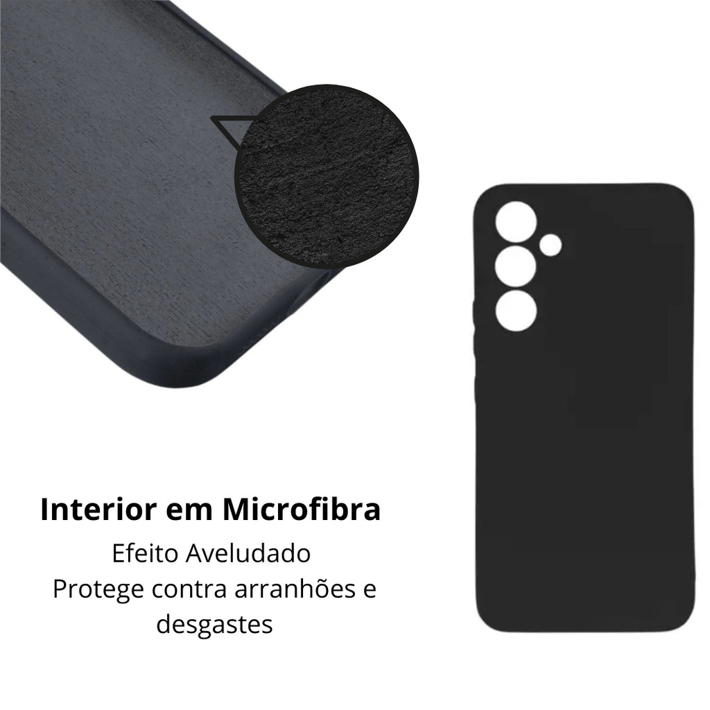 Película de Vidro Privacidade Samsung Galaxy M15 + Capa Silicone Veludo Preta