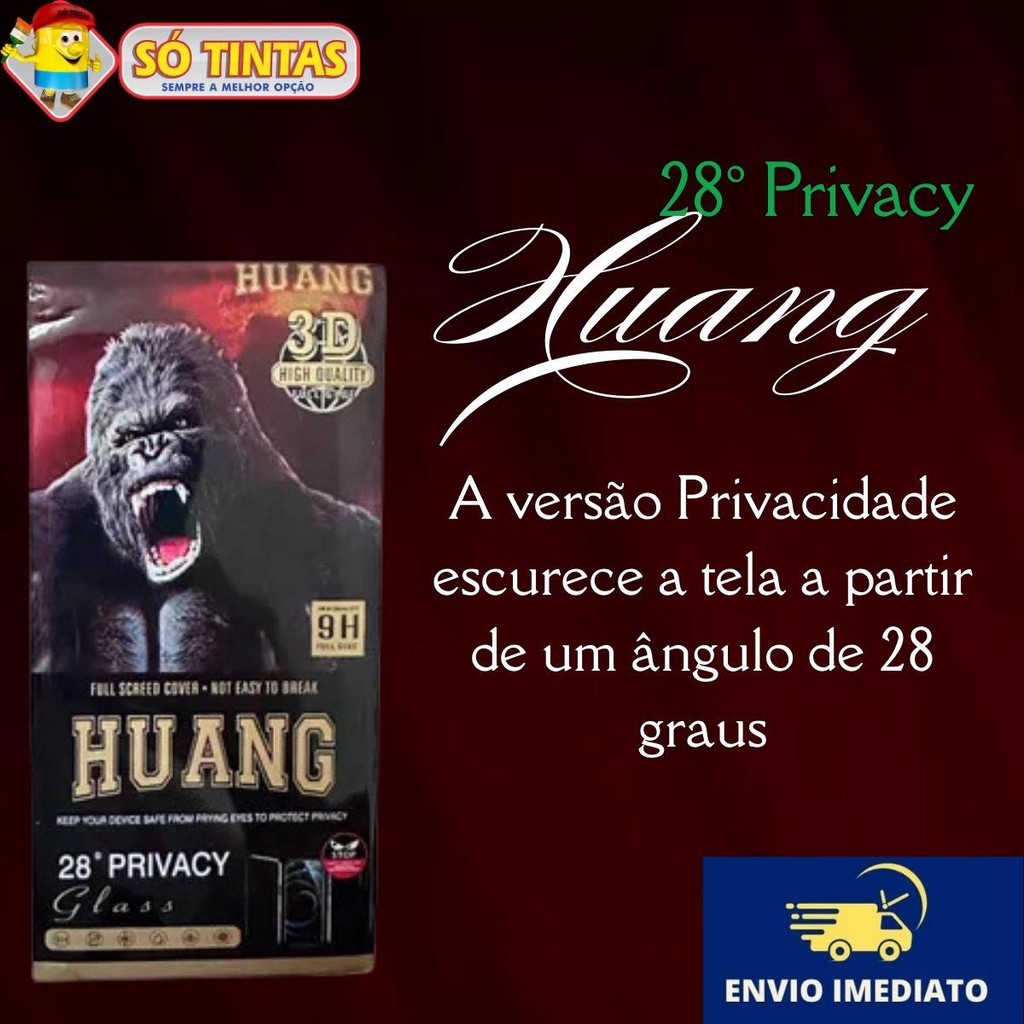 • Limpeza da Tela: Antes de aplicar, utilize o pano de limpeza para remover poeira, sujeira e manchas da tela do celular. Certifique-se de que a superfície esteja completamente limpa e seca. • Posicionamento Preciso: Alinhe cuidadosamente o vidro temperado com a tela do dispositivo, certificando-se de que os recortes para câmera e botões estejam corretamente posicionados. • Fixação Sem Bolhas: Com o vidro bem posicionado, pressione o centro da tela e observe o adesivo espalhar-se suavemente, eliminando automaticamente qualquer bolha de ar. Para garantir uma fixação perfeita, use um cartão ou o pano de microfibra para suavizar qualquer bolha restante. • Verificação Final: Após a aplicação, verifique se o vidro está firmemente fixado e que a funcionalidade da tela sensível ao toque permanece intacta. A tela agora está protegida contra impactos, arranhões e com privacidade assegurada! Proteção Completa e Privacidade Exclusiva com o Premium Vidro Temperado Privacidade Imagine navegar tranquilamente no seu smartphone, sem se preocupar com olhares curiosos ao seu redor. A tela é sua, protegida de riscos e impactos, e com a exclusiva tecnologia de privacidade, apenas você consegue visualizar o conteúdo, mantendo seu mundo digital seguro e discreto. Agora, pense na frustração de ter seu celular exposto em ambientes públicos, com pessoas ao seu lado bisbilhotando suas mensagens e informações privadas. Além disso, sem a proteção adequada, seu dispositivo fica vulnerável a arranhões e pequenos impactos que podem comprometer a tela. O Premium Vidro Temperado Privacidade resolve esses problemas ao oferecer uma proteção superior graças ao seu processo de têmpera no tempo ideal, garantindo a maior resistência da categoria. A versão Privacidade escurece a tela a partir de um ângulo de 28 graus, impedindo que curiosos vejam seu conteúdo. Além disso, sua superfície altamente resistente protege contra arranhões, riscos e impactos leves, prolongando a vida útil da tela do seu smartphone. Benefícios: •Privacidade total: Somente você consegue ver a tela; quem estiver ao lado verá apenas uma tela preta. •Proteção premium: Resistente a riscos e arranhões, mantendo sua tela intacta. •Proteção contra impactos leves: Absorve choques e previne danos à tela. •Visual cristalino: Mesmo com a proteção, a nitidez da tela não é afetada, garantindo uma visualização impecável. Características: •Vidro temperado com o maior nível de resistência da categoria. •Tecnologia de privacidade com escurecimento a partir de 28 graus. •Superfície resistente a riscos, arranhões e impactos leves. •Design fino e leve, sem comprometer o toque sensível da tela. Transforme a experiência com seu smartphone, protegendo sua privacidade e sua tela ao mesmo tempo! Dados Técnicos: • Material: Vidro temperado de alta qualidade. • Dureza: Classificação 9H (máxima resistência a arranhões e riscos). • Espessura: 0,33 mm (ultrafino, preserva a sensibilidade da tela). • Transparência: 99%, garantindo excelente qualidade de imagem e brilho. • Tecnologia de Privacidade: Ângulo de visão limitado a 28 graus, escurecendo a tela para observadores laterais. • Revestimento Oleofóbico: Reduz marcas de dedos, manchas e facilita a limpeza. • Resistência a Impactos: Protege contra quedas leves e choques moderados. • Adesão: Adesivo de silicone sem bolhas, de fácil aplicação e remoção. • Sensibilidade ao Toque: Preserva a precisão do toque original da tela. • Cobertura: Proteção completa da tela, com recortes precisos para câmeras e sensores. Principais perguntas: Acompanha nota fiscal? Sim, todos os nossos produtos são enviados com nota fiscal. O envio é por Correios? Pode ser enviado por Correios ou por transportadora privada, isso vai depender da disponibilidade das transportadoras que atendem o seu endereço. Só Tintas, sempre a melhor opção. Somos a maior rede de lojas de tintas no estado do Rio de Janeiro. Desde 1977, a Só Tintas atua no Rio de Janeiro oferecendo os melhores produtos e soluções em pintura imobiliária, automotiva e industrial. Somos uma empresa familiar que começou em Teresópolis e hoje temos mais de 30 lojas físicas. Trabalhamos de forma ética e transparente, com o principal objetivo de proporcionar aos nossos clientes um atendimento de excelência, provendo as melhores soluções. Nossa missão é levar cor para a vida das pessoas. Por isso a Só Tintas é Sempre a Melhor Opção