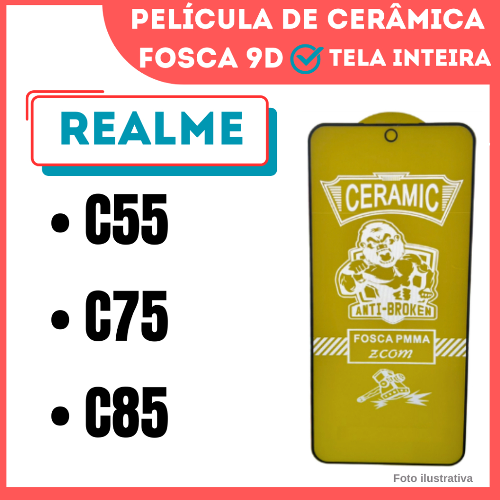 Película Fosca de Cerâmica Flexível Para Realme C55 / C75 / C85 / 9D.