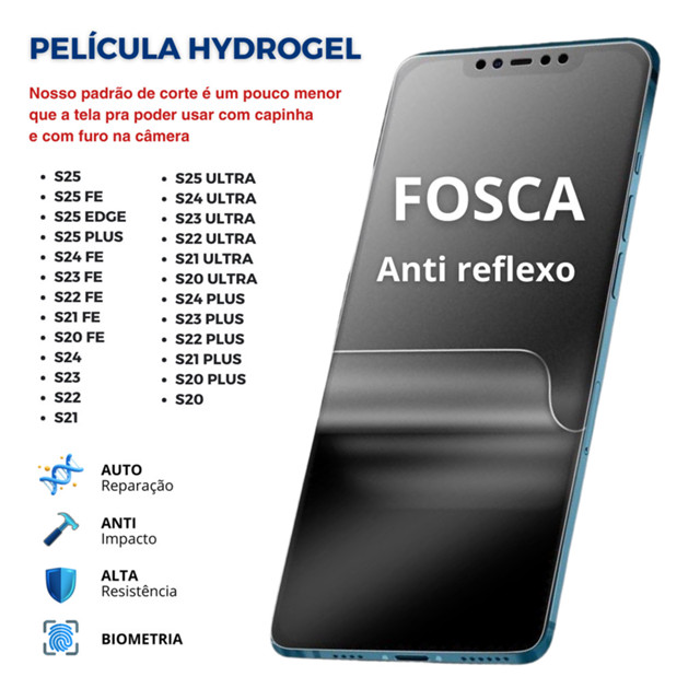 Película Hidrogel Fosca Anti Reflexo Premium para Samsung Linha A e S - S25, S24, S23, S20
