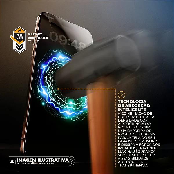 DESCRIÇÃOA Película Privacidade Survivor da Gshield é a solução definitiva para quem busca proteger a tela do smartphone com máxima eficiência e manter sua privacidade em qualquer ambiente. Desenvolvida com tecnologia de ponta, esta película de poliuretano de alta resistência com revestimento de d3-shield combina proteção superior, funcionalidade avançada e o benefício adicional de bloquear a visão lateral da tela, garantindo que apenas você visualize o conteúdo do dispositivo. Com dureza 9H, a película oferece uma barreira extremamente resistente contra arranhões, quedas e impactos. O poliuretano temperado de alta qualidade protege sua tela contra os danos do uso diário, mantendo-a impecável e com aparência nova por mais tempo. Além disso, o revestimento antirreflexo minimiza o brilho de luzes externas, proporcionando uma experiência de visualização mais confortável, mesmo sob luz solar direta. O grande diferencial da Película Privacidade está na tecnologia Military Anti-Spy Tech, que impede que pessoas próximas consigam enxergar o que está na sua tela. Esse recurso é essencial para quem valoriza a segurança das informações, seja no trabalho, em transporte público ou em locais movimentados. Outro destaque é o aplicador exclusivo incluído no kit, que torna o processo de instalação simples e livre de bolhas. Mesmo quem nunca aplicou uma película antes conseguirá um acabamento perfeito e alinhado. Além disso, o revestimento oleofóbico evita marcas de digitais e manchas, garantindo que a tela permaneça limpa e com uma aparência premium. A película também mantém a nitidez da tela, preservando as cores e a qualidade original das imagens. Com apenas 0,33 mm de espessura, ela não compromete a sensibilidade ao toque, proporcionando uma interação fluida e precisa com o dispositivo. A Película Privacidade Antirreflexo Survivor da Gshield é a escolha perfeita para quem busca o equilíbrio entre proteção, privacidade e conforto. Invista em tecnologia de ponta e tenha a tranquilidade de usar seu smartphone com segurança em qualquer lugar. D3-Shield: Proteção Militar para sua tela!O D3-Shield é o segredo da resistência absurda da Película Survivor. Esse revestimento especial usa uma tecnologia inteligente: quando a tela sofre um impacto, as moléculas do D3 se agrupam e absorvem o choque, reduzindo o risco de danos. Além de ser ultrafino e discreto, o D3-Shield mantém a sensibilidade da tela perfeita, sem travamentos ou atrasos. Ele também protege contra arranhões e o desgaste do dia a dia, garantindo uma proteção duradoura sem comprometer o design do seu celular. ESPECIFICAÇÕESMarca: GshieldMaterial: Poliuretano de alta resistência com revestimento D3-Shield (Película não trinca)Espessura: 0,33mm Proteção: Contra pequenos impactos e riscos à telaGrau de transparência: 85% High DefinitionCertificações: US MilitaryDimensões: Cobre as dimensões da tela, podendo existir leves recuos para melhor utilização com capas