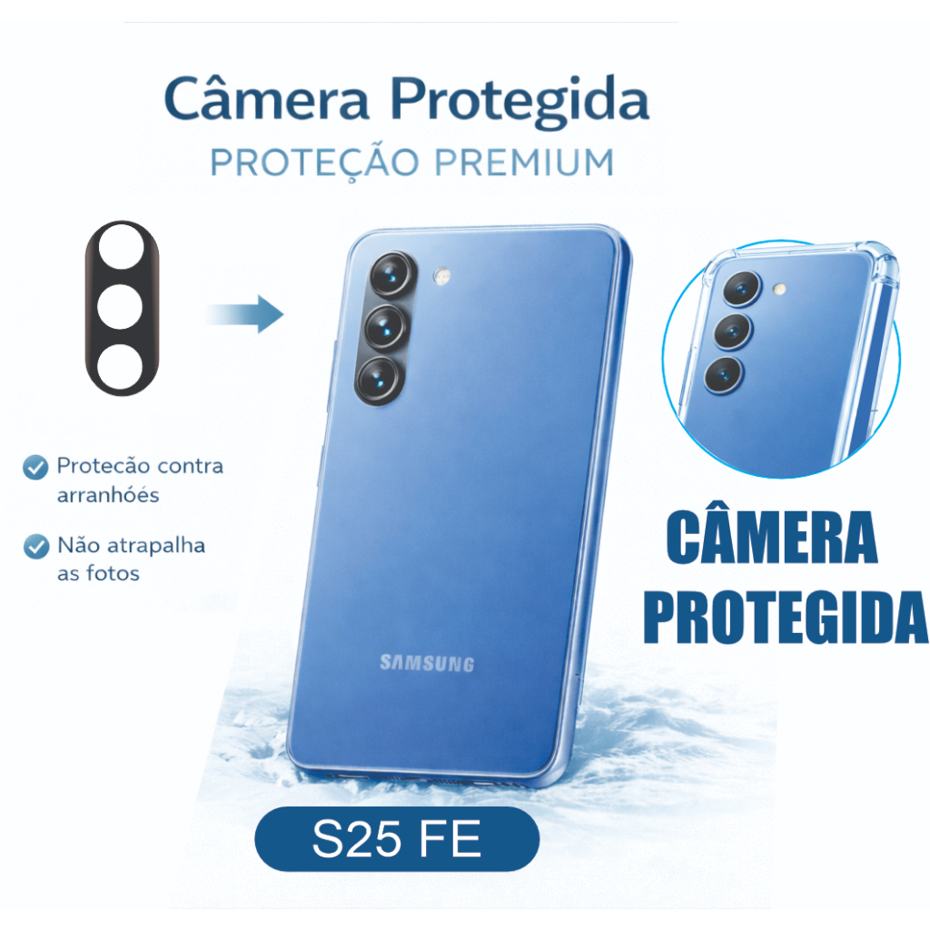 Película de Privacidade – Tela Invisível Para Curiosos -Tecnologia PRIVACY, deixando a tela visível somente de frente -Quem estiver ao lado não consegue ver o que você está fazendo -Proteção contra impactos, arranhões e quedas -Ideal para quem usa o celular em locais públicos Película de Proteção da Lente da Câmera -Vidro temperado de alta resistência -Evita arranhões, quebras e poeira na câmera -Mantém 100% da qualidade das fotos Capa Transparente Premium -Material flexível, durável e resistente -Transparente, mantendo o visual original do SAMSUNG S25 FE -Bordas reforçadas para absorção de impacto -Protege contra quedas, arranhões e sujeira