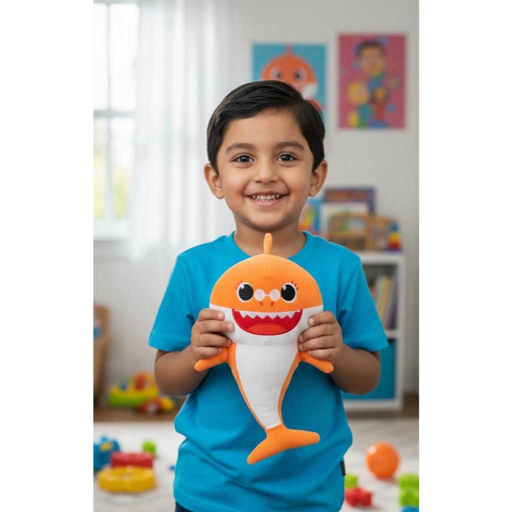 Pelúcia baby shark tubarão laranja