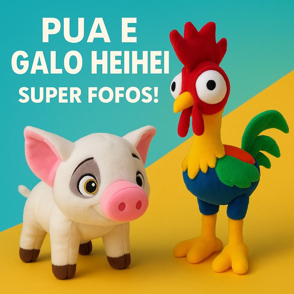 🐔 Pelúcia Galo HeiHei 30cm e 🐷 Pelúcia Porquinho Pua 26cm – direto do filme! ✨ Feitas com material macio, fofo e antialérgico, seguras para todas as idades. 🧒🏻 Perfeitas para crianças, fãs da Disney e apaixonados por pelúcias! 🎁 Ideal para brincar, colecionar ou decorar o quarto com muito charme. 📏 Tamanhos reais: ✔️ HeiHei: 30cm ✔️ Pua: 26cm 🚚 Produto à pronta entrega, com envio rápido e embalado com cuidado!