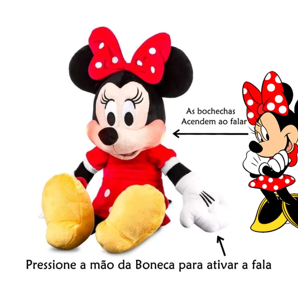 Pelúcia Minnie com Mecanismo Luz e Som 40cm Vestido Vermelho Multikids - BR2348